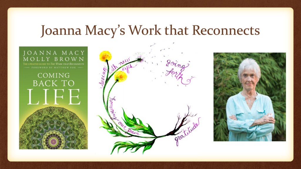 Joanna Macy’s Work that Reconnects began as a pioneering method for processing movement and ecological grief. Her cyclical, almost liturgical practices, encourage us to return again and again to gratitude. Then, turning our attention to honoring our pain allows us to see the world with new eyes. And even after one hundred burn outs, doing so enables us to go forth, back into the fray. To say with Samuel Becket, “I can’t go on. I’ll go on.” In a way, I structured this talk around this liturgy of hope: Gratitude, pain, new ways of seeing and the ways we might go forth from this conference.